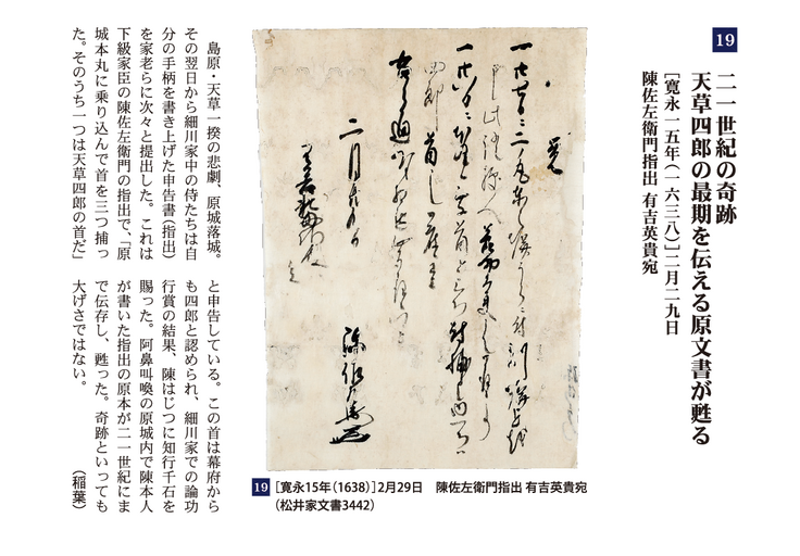 松井家文書には、天草四郎の首をとった!陳佐左衛門自身が提出した差出の記録が残っています。