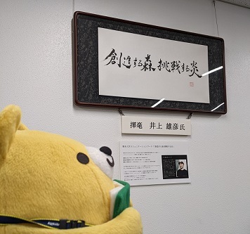 漫画家 井上雄彦氏に揮毫いただいたコミュニケーションワード「創造する森 挑戦する炎」の額装が附属図書館に展示されています!