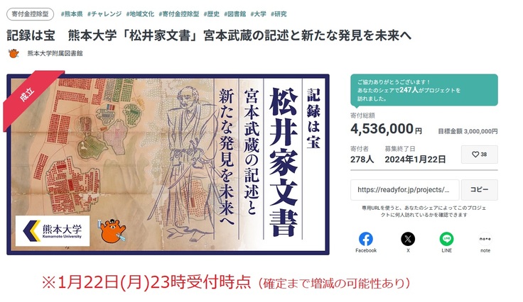 【御礼】松井家文書プロジェクトへのご支援をありがとうございました!(1月23日(火))