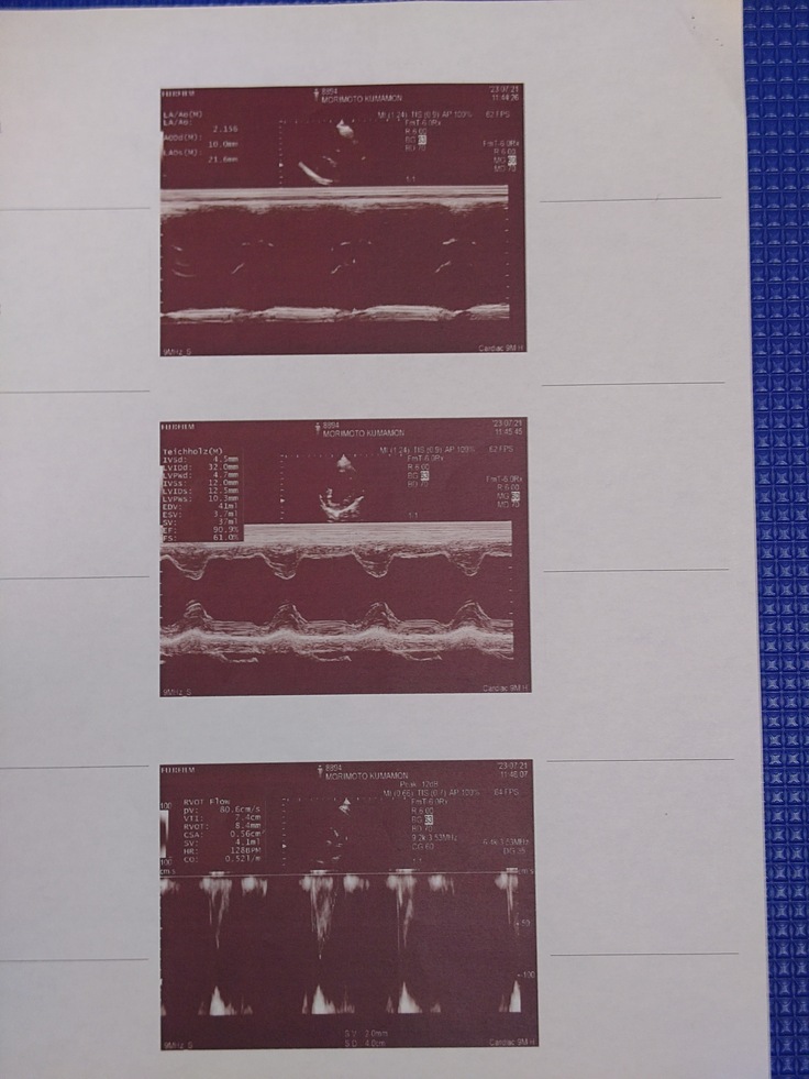 7月下旬、紹介先の病院に来院し半日の預かりで心臓のより詳しい検査を行いました。