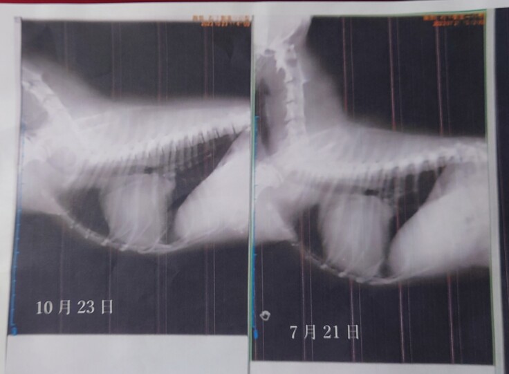 心拡大も縦は少し縮んだものの、横に拡大し始めてます。縦に少し縮んだ分、気管への圧迫も少し緩んだのか、最近咳は少し減りました。