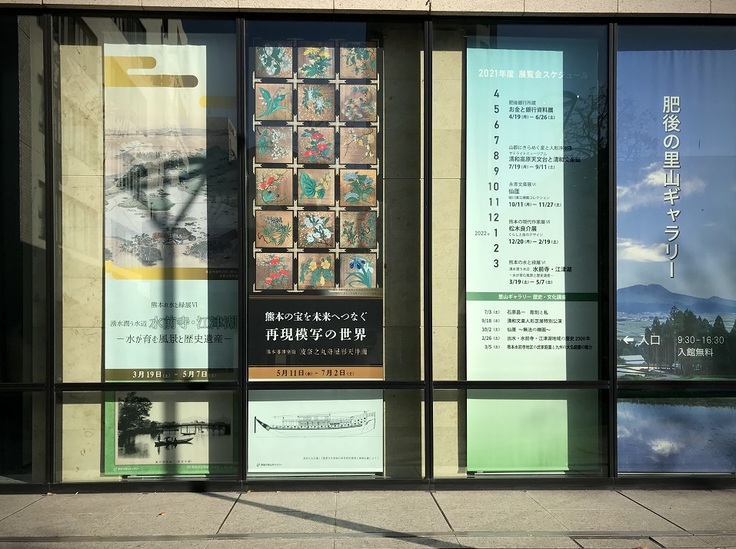 展覧会は来年5月ですが、肥後の里山ギャラリー(肥後銀行本店西側ウィンドー)には、もう展覧会バナー広告が掛けられました。