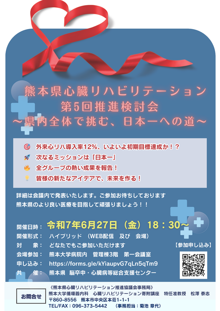 📢 第5回 熊本県心臓リハビリテーション推進検討会(県内全体会議)開催のお知らせ