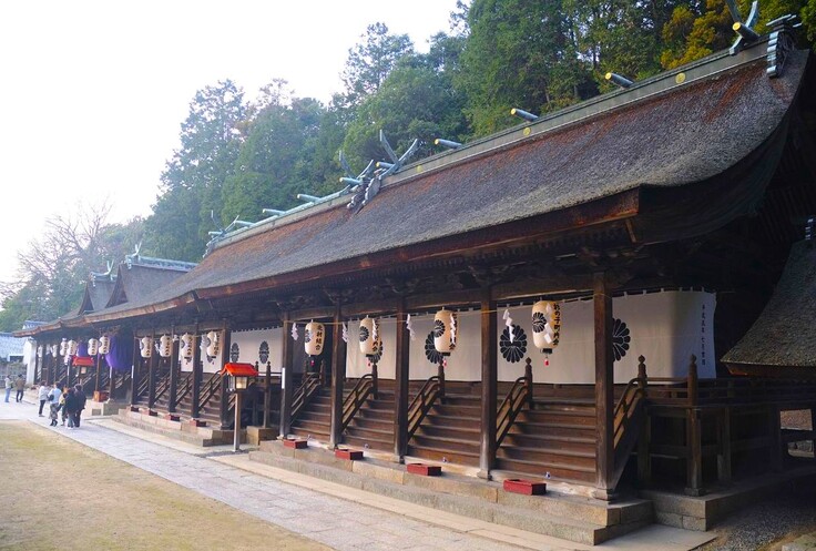 50年ぶりの檜皮葺本殿(第四殿)を約1メートル持ち上げる揚屋工法による工事等の見学会を行ないます。