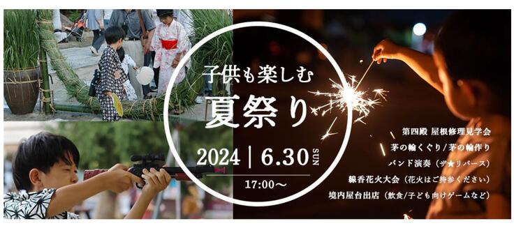 大祓神事、茅の輪くぐり、バンド演奏、線香花火大会、第四殿見学会を行います。