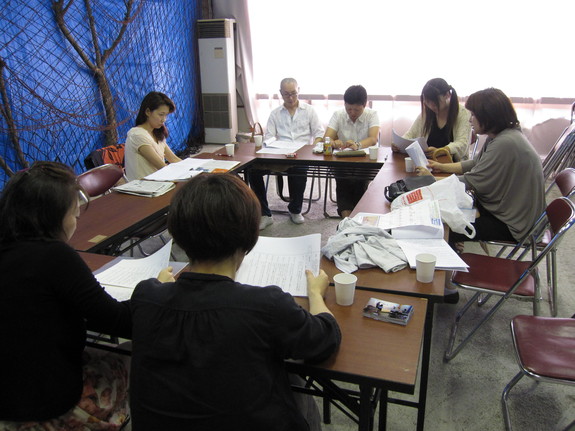 画像は、読み合わせ・演技指導を受ける練習日の1コマです。