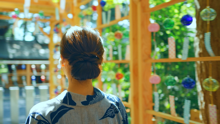6月~9月末に行われる夏祭り「かなで」は、夏の境内にながれる爽やかな風と儚い風鈴の音色に想いを託す夏のお祭りです。祈願祭の神事では、太々神楽が奏でられ、ご参拝の皆さまの想いを神さまに届けます。風鈴が涼やかな音色を奏で、短冊に込められた思いが満ち溢れる境内には、例年多くの参拝者の方々にお越しいただいています。(そのほか熊野大社に伝わるお祭りについてはこちらをご覧ください。)