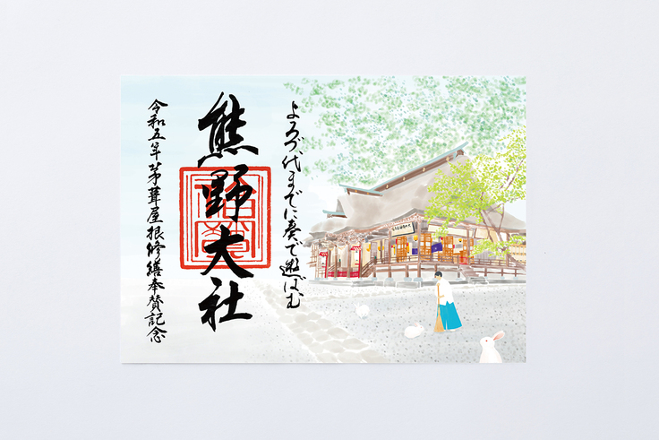 返礼品付きコースの方にお渡しさせていただく、限定の御朱印。夏の涼やかな拝殿の様子を描いていただきました。