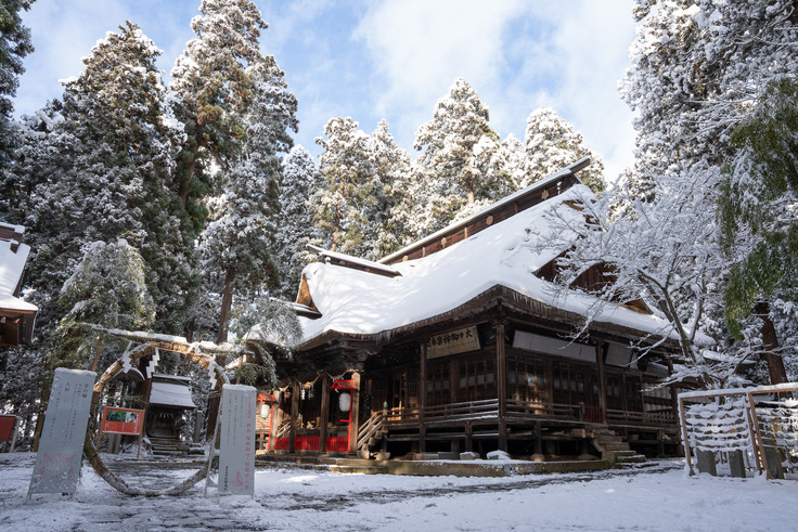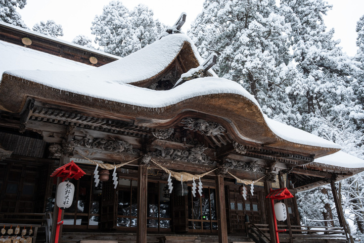 境内では、新年元旦より三が日の期間、皆様に感謝を申し上げ、新春本殿御垣内参拝を行います。帰省の際など、こちらにお越しいただける機会がございましたら、ぜひ、お立ち寄りいただき、皆様のお力によって美しさを取り戻した茅葺屋根をご覧いただき、新年のご参拝をいただければ幸いです。