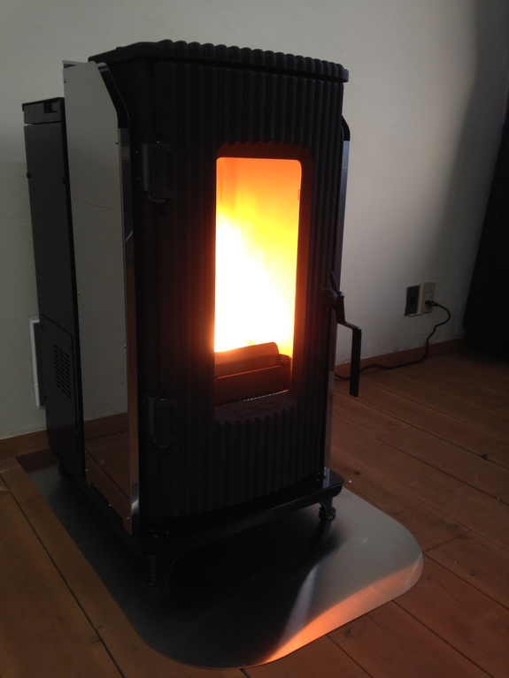ペレットストーブは、前面と上部からの輻射熱でとても暖かです。ペレットがタンクから落ちてくるときのコロコロという音、そしてガラス窓から見える炎が、単なる暖房だけではない、なんともいえない温かさを感じさせます。お湯を沸かしてコーヒーやお茶を飲んだり、焼き芋を焼いてみたり、そんなお楽しみもついてきます♪お手入れは少し手間がかかりますが、かえって愛着がわき、何よりご支援いただいたみなさまのことを思い出しながら、大切に長く使うことができそうです。