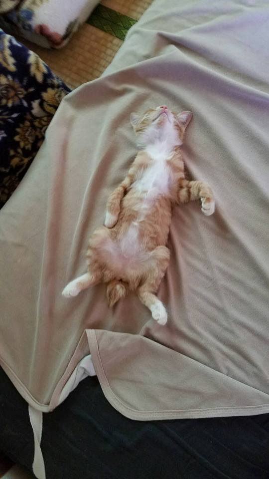 今はこんなふうに安心してお腹を出して寝られる居場所をゲットしました