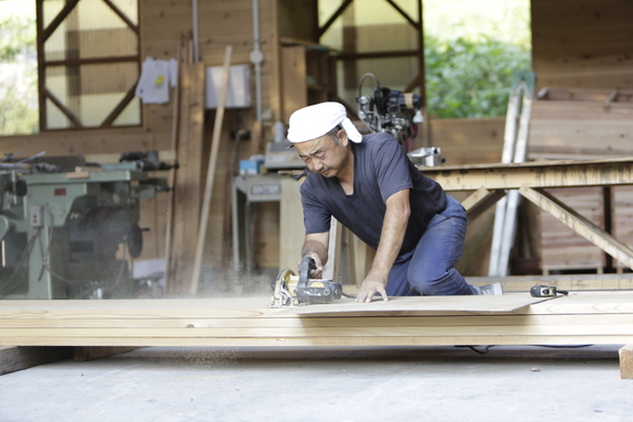 いま、住田町という岩手県陸前高田市の北に位置する林業のまちの材木店さんに試作品の開発を担って頂いています。カットは職人のおおなえさん。