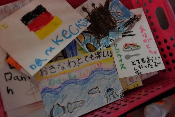 午前は、室内プログラム。今回の61次保養に子どもたちが参加できたのは、「ドルトムント独日協会」からのご支援を頂いたおかげでした。みんなでドイツの方々へお礼のお手紙を書きました。ドイツ語で「ありがとう」“ダンケシェーン”を教えてもらい、お手紙に書くお友達がたくさんいました!!テーブルで黙々と一生懸命に取り組んでいましたね^^みんなの気持ちをこめて書いたお礼のお手紙が無事ドイツの皆さんの元に届きますよう。