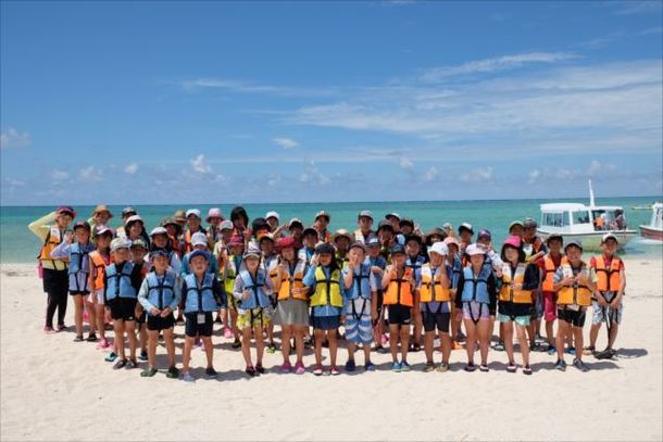 船で水上を走っている時から、子どもたち全員が、きれいな海に大感動でした^^ハテの浜に着いたらすぐに記念写真をパシャリ☆しっかり準備運動をしていざ海へ!!初めて海に入る子も大喜びで誰一人怪我することなく楽しむことができました★泳ぎの得意なお友達は、ロープを張っているスタッフさんがいる