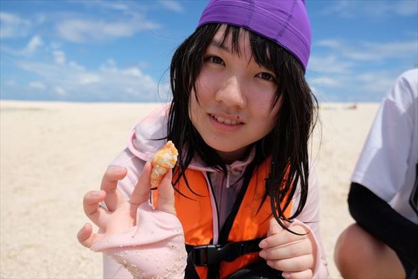 透き通った海で思う存分泳いだり、泳ぎながら貝を拾ったり、砂浜で貝殻やサンゴを集めたり。