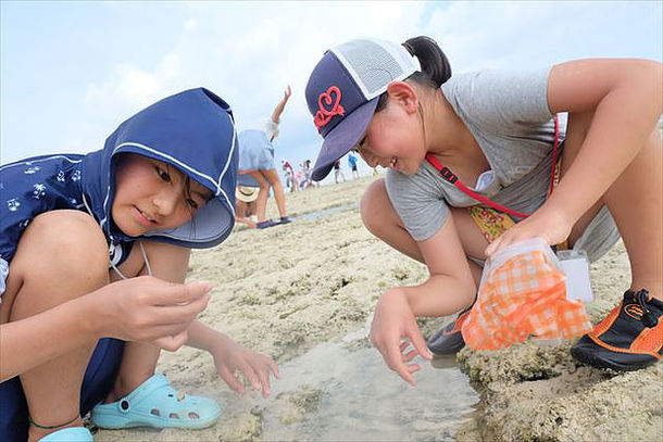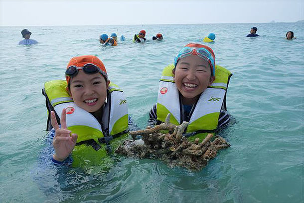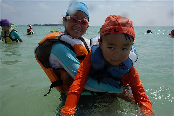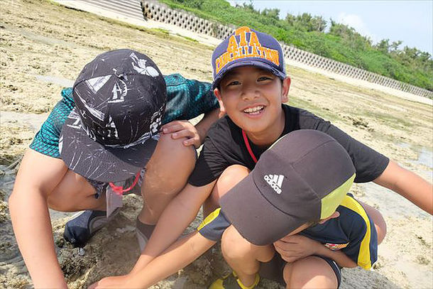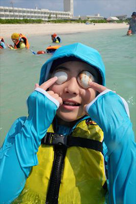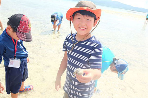 気温が暑く、陽射しがまぶしかったけど、みんな元気よく泳いだり、貝殻を拾ったりして、久米島の海を満喫していました。