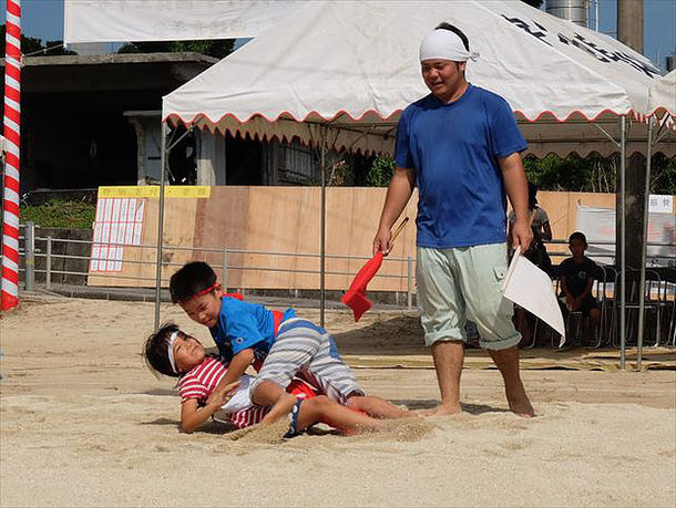 午後は、久米島の「西銘地区」で行われた「西銘全島角力大会」に参加しました。地元の子たちにまじっての球美の里のみんなの頑張り、ご覧ください!