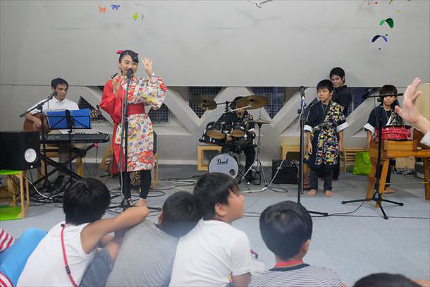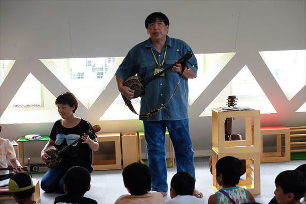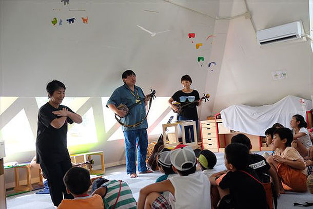 午後は、子ども達のために三線の名人が駆けつけて来てくださり、三線の演奏会をして頂きました。