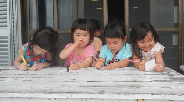 いよいよ球美の里で過ごすのもあと二日となり、午前は明日の帰宅に向けて、お母さんたちはパッキング。そして午後はお別れ会。久米島で購入したウクレレを持って歌うなど、子どもたちやボランティアさんが楽しい出し物を披露してくれました。