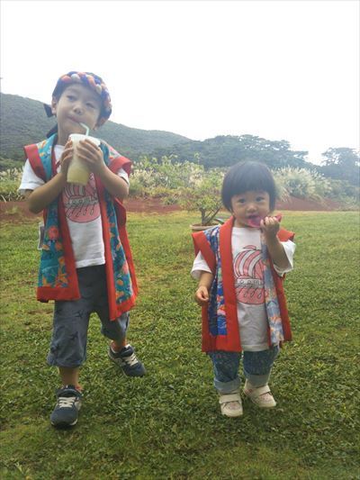 午後、日本一の車えびフェスティバルに行きました。「登武那覇太鼓ジュニア」というエイサーの団体の演舞をはじめてみた子どもたちは大興奮です。