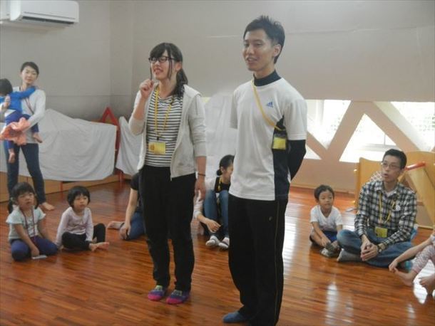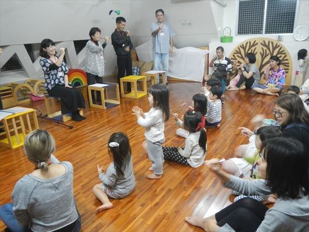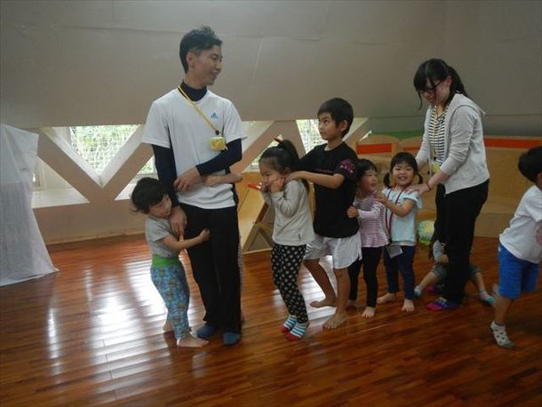 みなさん現役の音楽の先生や保育士さんで、子どもたちのために一生懸命プログラム内容を考えてくれました。皆で触れ合って楽しみながら心身を解放してみんなどんどん打ち解けていきます。