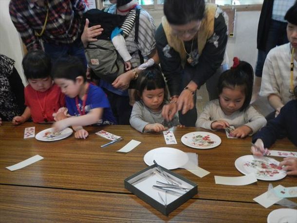押し花教室。沖縄・糸満市に住んでいる先生2人が球美の里の子どもたちのためにとお越しくださいました。