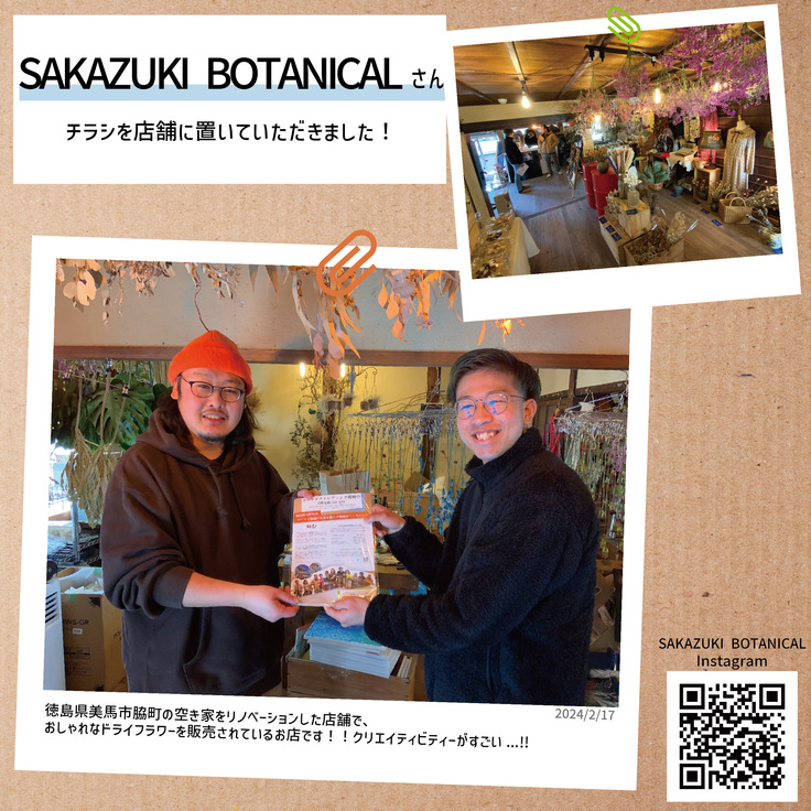 今回は美馬市にあるSAKAZUKIBOTANICALさんへチラシを置かせて頂きました‼️