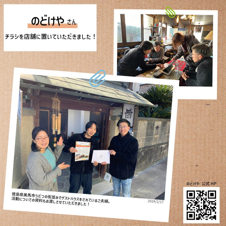 昨日に続き隣町の美馬市でゲストハウスをされている のどけやさん にチラシをお渡しさせていただきました!