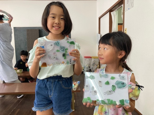 毎月恒例、アソビトマナビ様では初の試みの「シーグラス水族館作り」を開催しました。