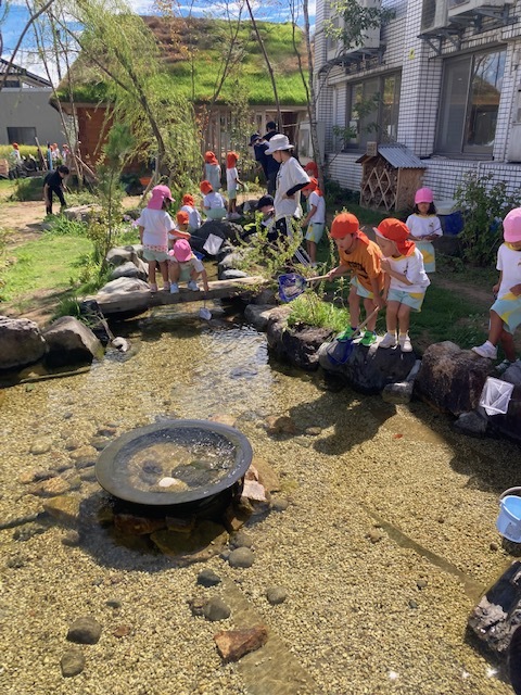 こちらも毎月恒例、めぐみ子ども園様で、園内の生き物探検隊を開催。