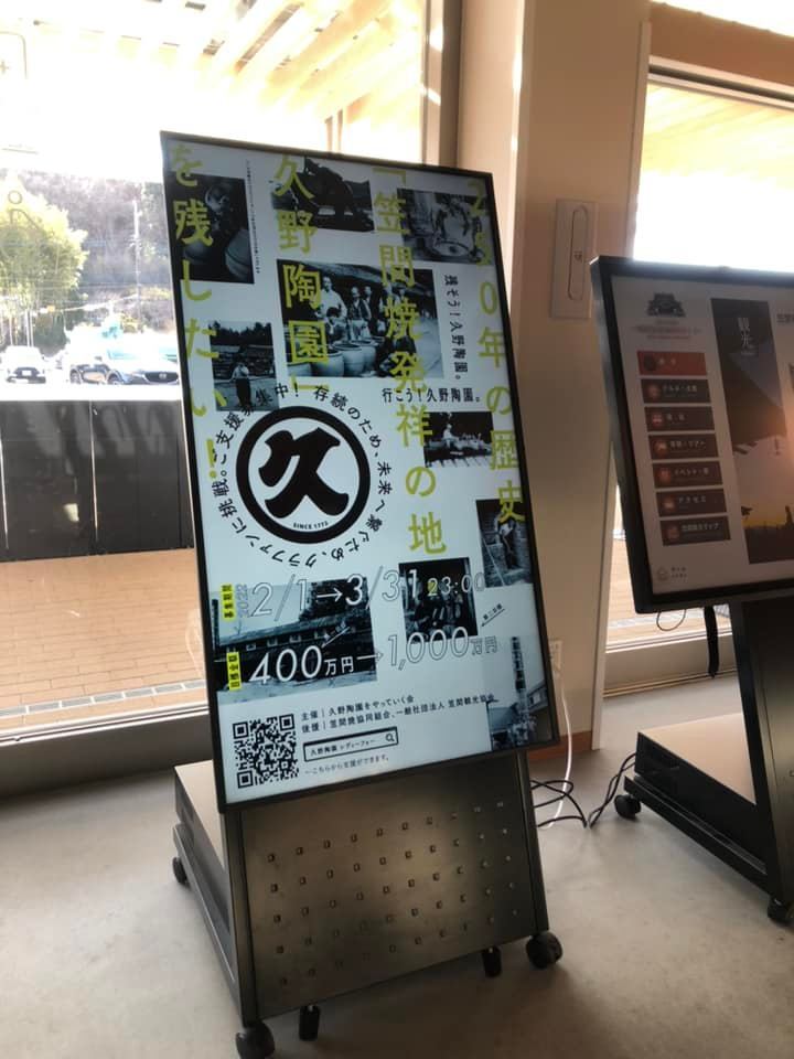笠間・道の駅には、笠間市役所のご協力をいただき、サイネージにも!!市や町あげて、みんなに応援していただいております。