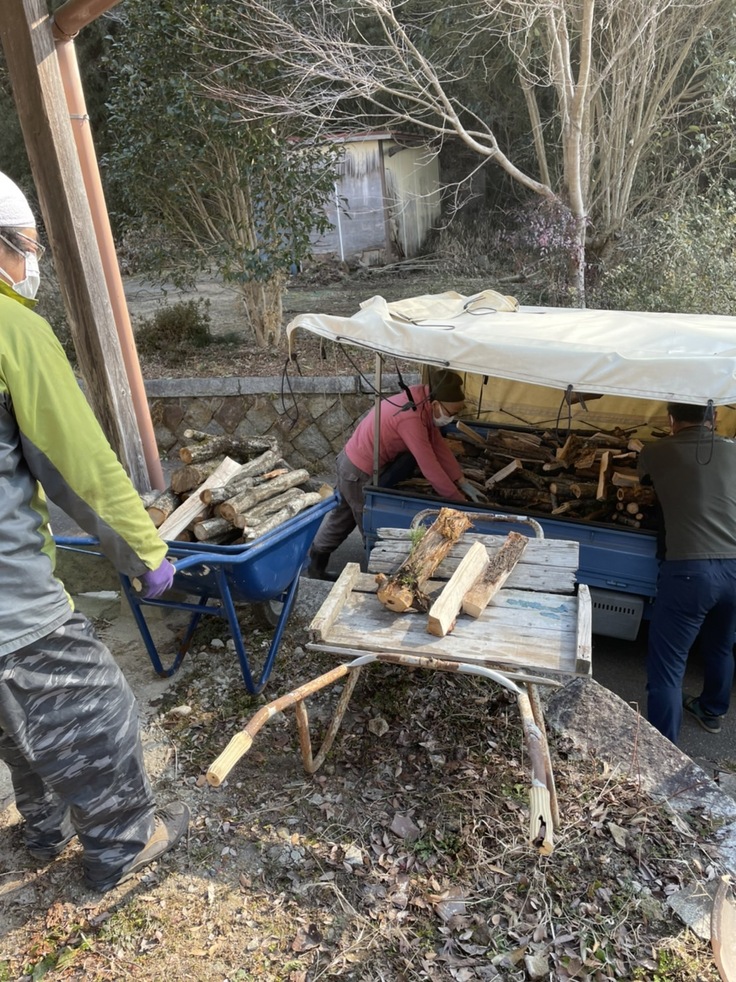 と、その前に、「薪を持って来たよ~」と久野陶園の囲炉裏で使う薪をご提供いただきました。人手があるので、らくらくの、あっという間に運ぶことができました。