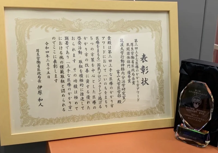 2022年3月には私たちの活動が、厚生労働省主催の第三回「上手な医療のかかり方アワード」で厚生労働省医政局長賞 民間団体部門(優秀賞)を受賞しました。