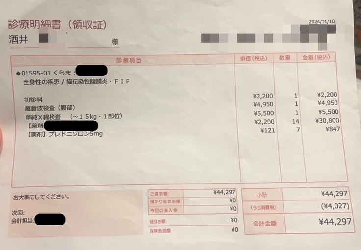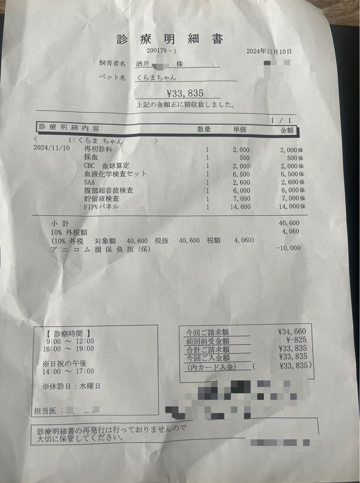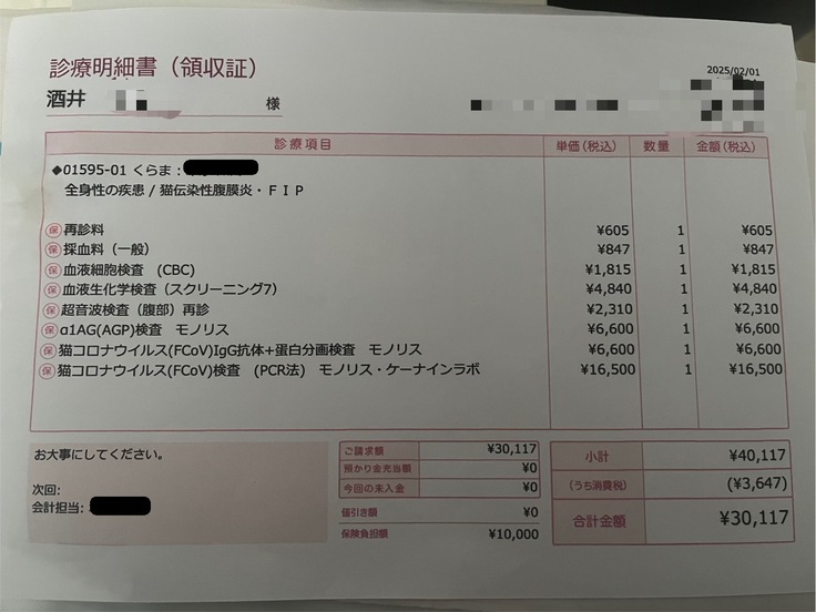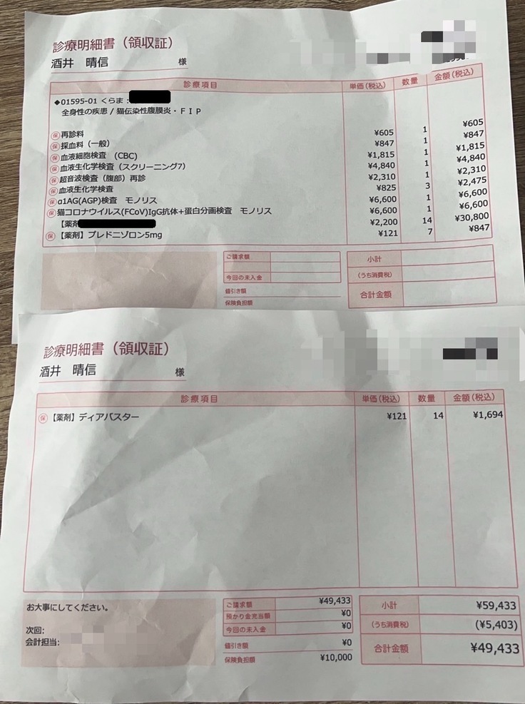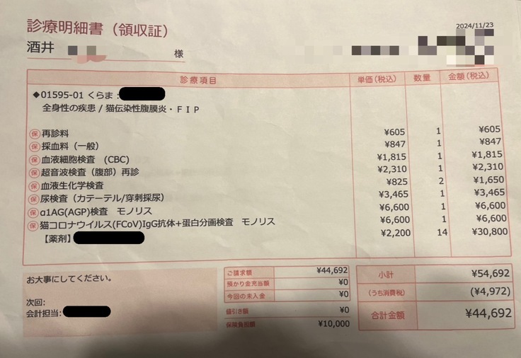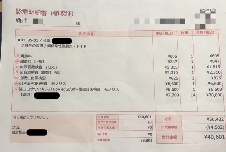 遺伝子検査まで完了しましたので、これまでかかった費用とこれからかかる概算をご報告いたします。