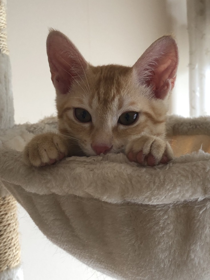 私はこの活動を始めて少したったころ、1匹の白血病の子猫と出会いました。たまたま見ていたSNS上、当会の里親さんに迎えられた2匹目の子猫でした。茶トラの男の子、その愛くるしい写真や動画に一目ぼれし、何てかわいい子だと投稿を楽しみにしていた・・・そのわずか数か月後、風邪がなかなか治らないその子は、実は白血病キャリアであったことが判明しました。検査は陰性だったはずなのに、とてもショックでした。可愛かったその子はその後リンパ腫を発症し、徐々にやせ細り、その痩せた体で懸命に治療をがんばっていました。自分が病気かわからない子猫に注射をしたり、薬を飲ませたり、体調が悪くなるたびに通院したり、根本的な治療が無いと言われる病気との先が見えない闘いはどんなに大変だっただろう、想像することしかできません。当時、落胆する里親さんにかける言葉もありませんでした。