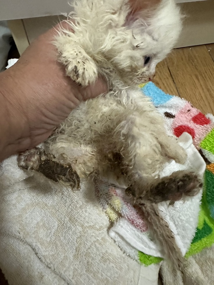 今回当会が保健所から引き受けた生後1か月ほどの4匹の子猫たちも、そんな現場からレスキューされたと聞いております。その子達は、下痢便で汚れ、やせ細っていてとても飼い猫とは言い難い状態でした。