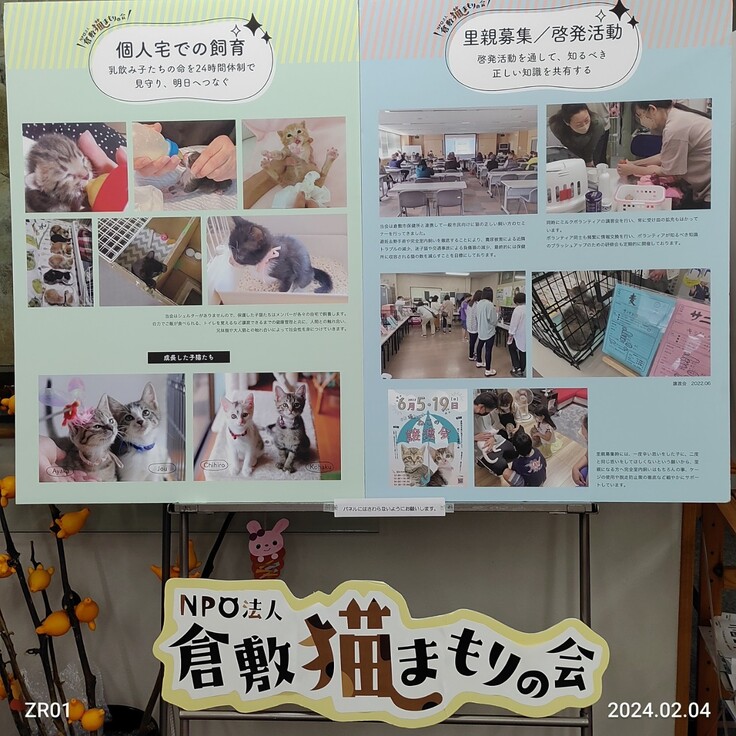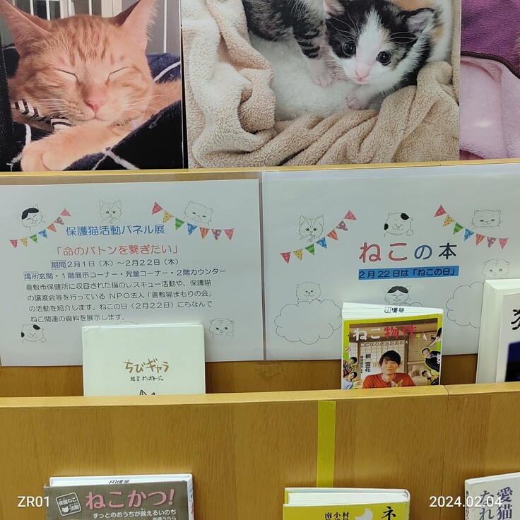 倉敷市立船穂図書館にて保護猫活動パネル展「命のバトンを繋ぎたい」