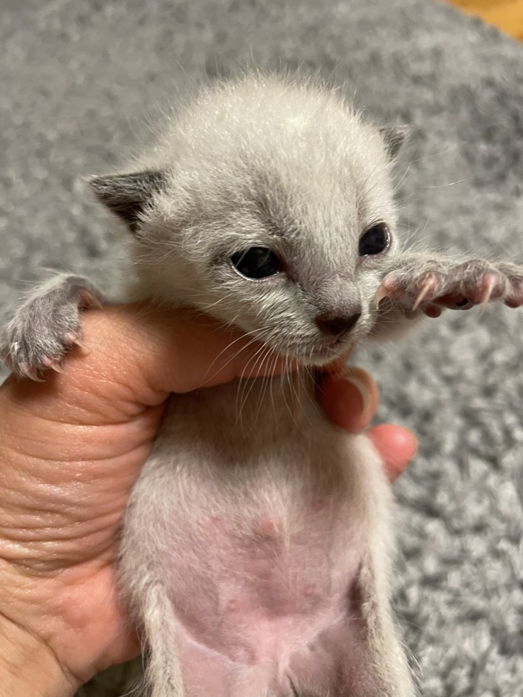☆目が開いたばかりのシャムMIX猫 よちよち乳飲み子ちゃん(黒猫ちゃんの兄弟と思われます(^^♪)