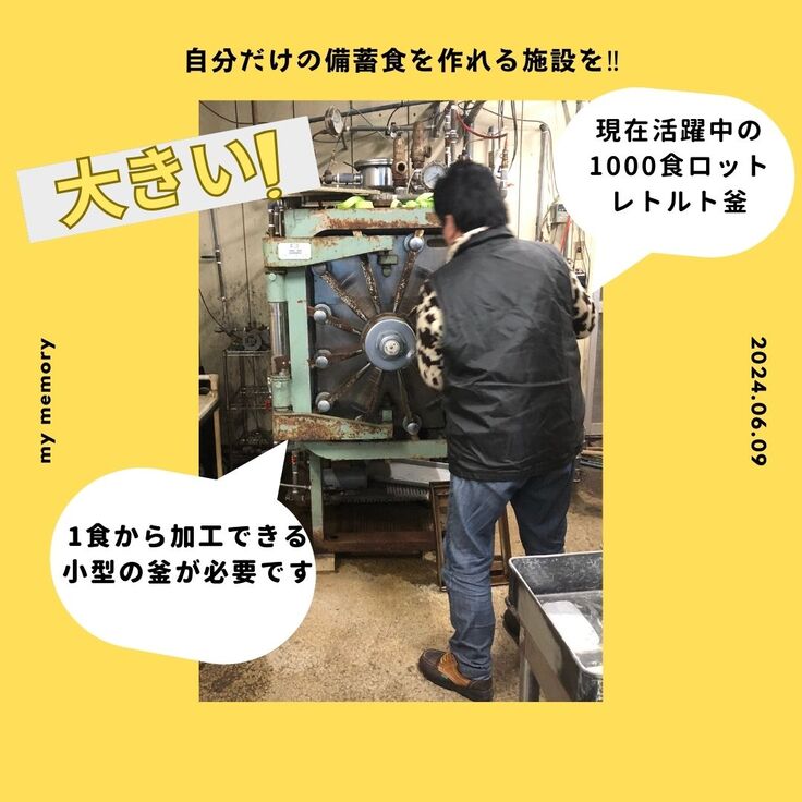 小回りのきく小ロットのレトルト釜で、必要な人に、こまめに加工できるようになります。
