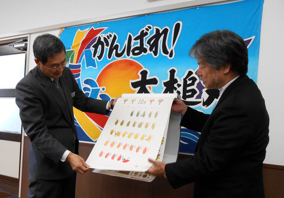 (大槌町役場で副町長にカレンダーと義援金を贈呈 2012年)