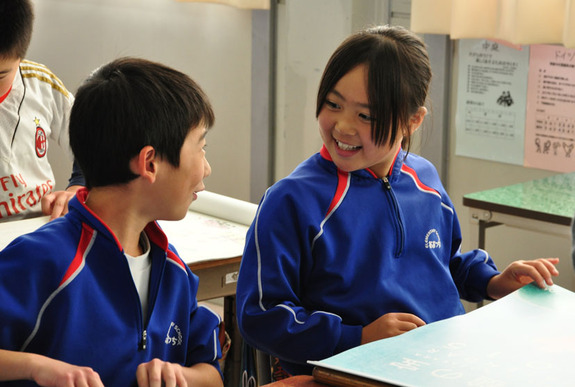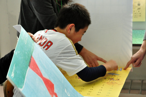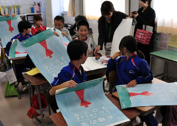 大槌小学校では、素敵な笑顔がたくさん見られました。みんな自分の描いた絵を見つけては、喜んでくれました。