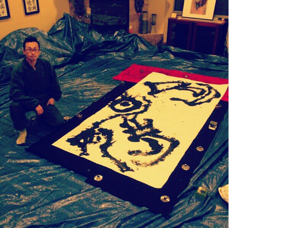 栗原正峰の作品を手ぬぐいにします。大きさは34cm×90cm。下の文字は金文で「目」。お配りする手ぬぐいの文字は未定です。
