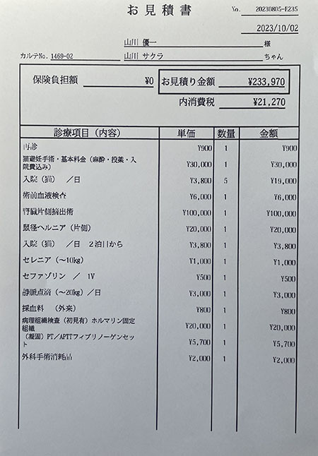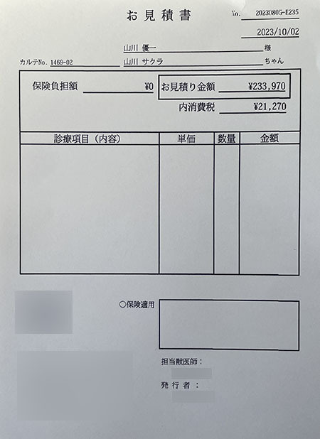 ページ上に掲載している診断書や治療明細書等の資料は全て動物病院から掲載の許諾を得ております。
