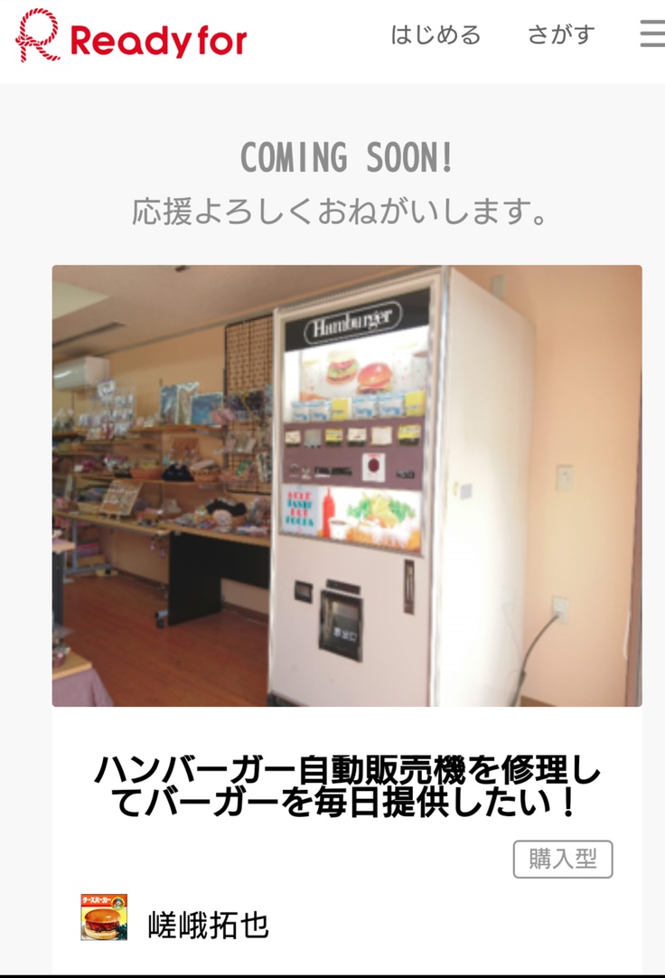 責任者:嵯峨拓也が管理運営するハンバーガー自販機を新築する自宅内に常設化し、今まで以上に自販機ファンやハンバーガーファンと交流できる場所を作るため、施設の建設費用として必要な4100万円のうち120万円を当クラウドファンディングで補填します。