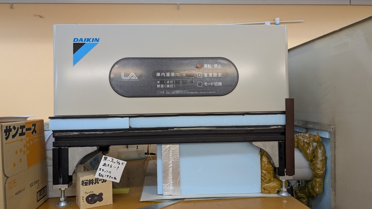 ハンバーガー自販機を譲り受けた私は色々な方に相談して、自販機復活の道を模索しました。黒部市内で親交のあったフリースペース「自由空間かって屋」さんに置かせていただけることとなり、故障個所の特定や修理方法もアドバイスをいただきました。故障していたのは冷蔵庫で、庫内を冷やすために業務用エアコンを連結する案が出ました。しかし大変にお金のかかる方法であり、自己資金では到底できることではありません。そんなときにクラウドファンディングの存在を知り、Ready forさんで一度目のクラウドファンディングに挑戦しました。
