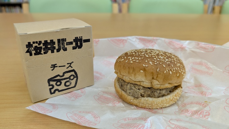 ハンバーガーは当初、県外の業者さんから仕入れて販売していましたが、その後に黒部市内にあるパン屋さんの協力を得て、ここでしか食べることのできないオリジナルなハンバーガーを提供できるようになりました。黒部市中心地の昔ながらの呼び名「桜井」を冠した「桜井バーガー」と名付けました。(370円)