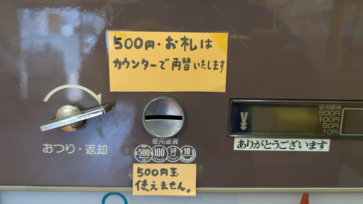 ハンバーガー自販機は昭和生まれのため、現在の500円玉が使えません。そしてお札を読み取る装置も付いていないため、ハンバーガーの購入には小銭が欠かせません。