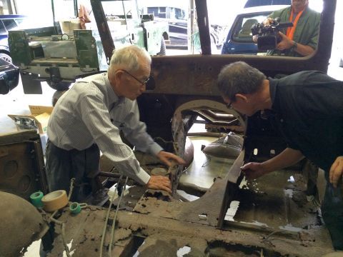 横浜市内のご自宅から、トヨタのハイブリット車をご自身で運転されて来られるほどの車好き。もちろん、戦時中からくろがね四起の修理に関わられ、戦後も何台ものくろがね四起を再生、車検修理していたそうです。