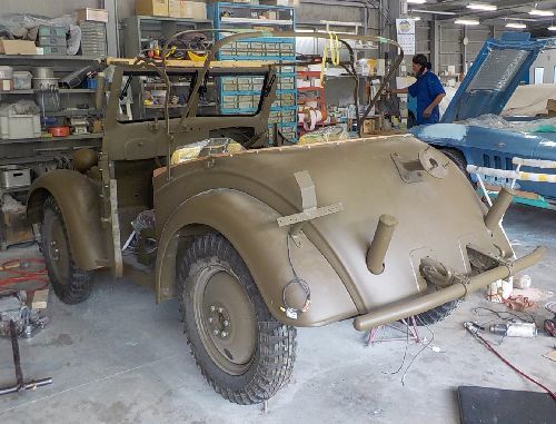 フロントウインドーガラスも入り、幌とドアの内張りを残して、鈑金塗装は完了したとの報告がありました。