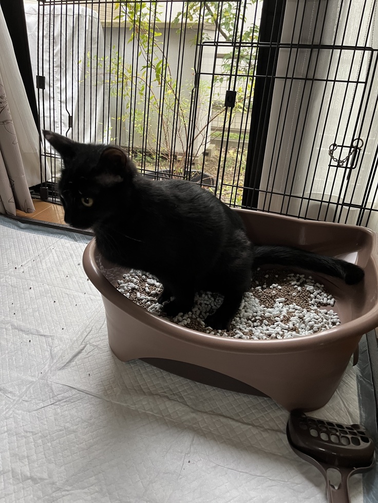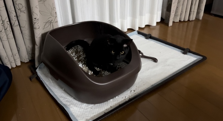 これまでは自分からトイレに行くそぶりも見せず、また私たちがおはぎをトイレに連れて行っても即出て行ってしまう…。